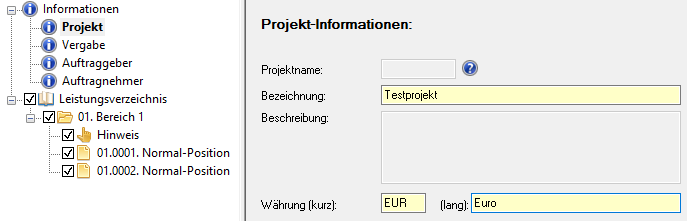 Nachdem jetzt das Gerüst des Leistungsverzeichnis (LV) in Schritt 2 erstellt wurde, müssen noch Daten pro Position eingetragen werden.
